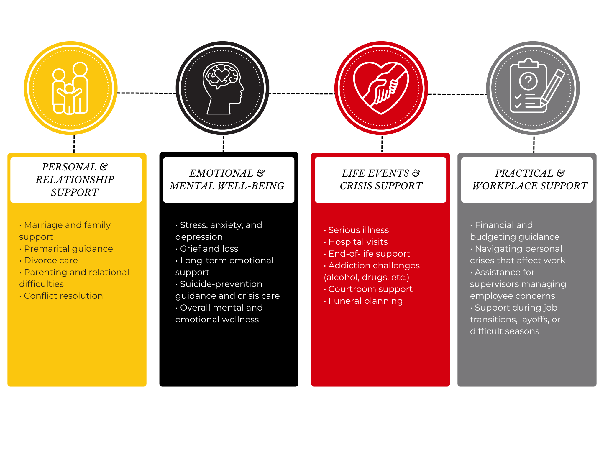 Our chaplain is a trained, certified care professional who is available to walk alongside employees through real-life challenges, provide encouragement, and offer guidance when it’s needed most.